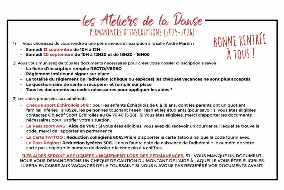 PROCHAINES DATES DE PERMANENCES D'INSCRIPTION :
